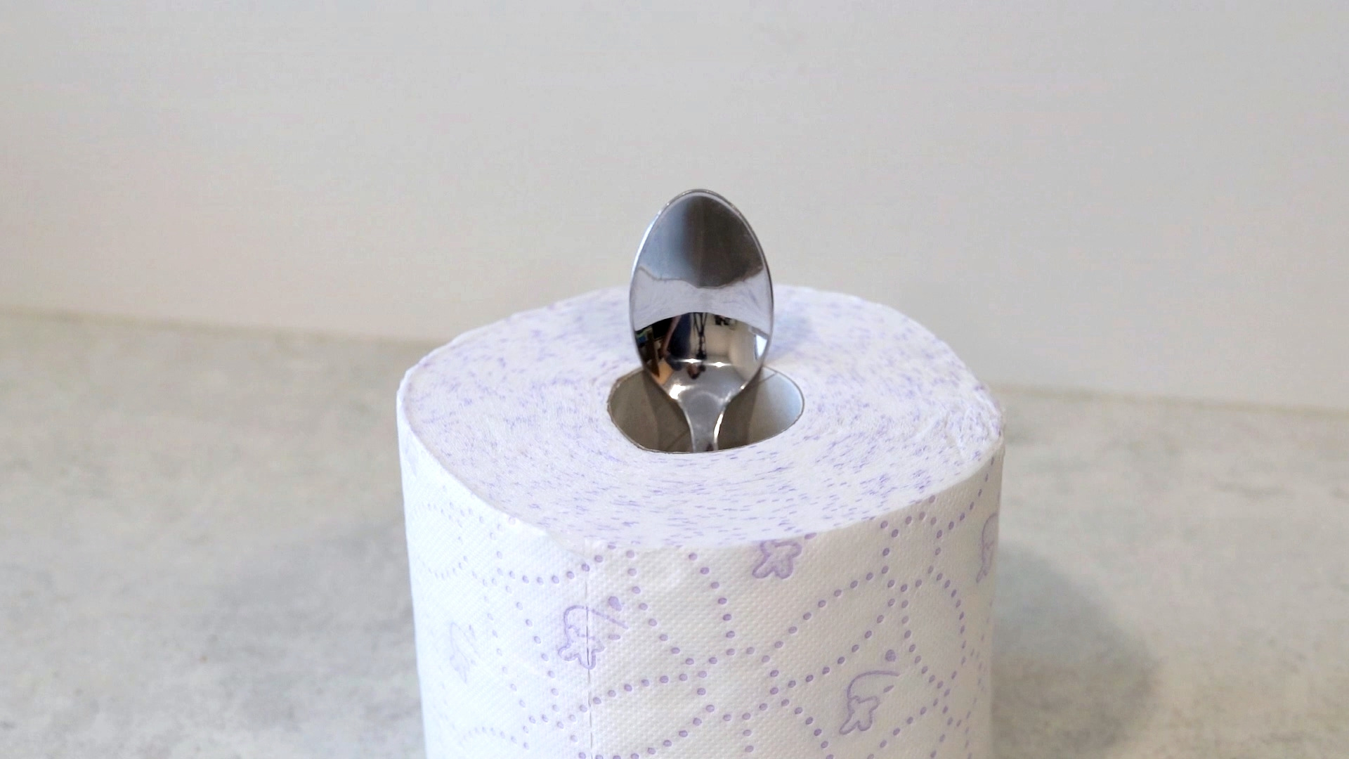 다음은 휴지에 숟가락을 꽂아 활용하는 방법인데요. 이렇게 숟가락 하나를 꽂은 후 주방이나 다른 곳에 두고 활용하면 정말 편해요.