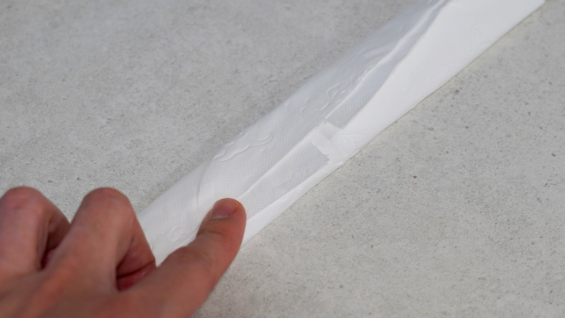 휴지를 여러 겹으로 접어 살짝 도톰하게 만들어 주세요. 너무 두꺼우면 스테이플러를 사용하기 어렵기 때문에 적당한 두께가 중요해요.
