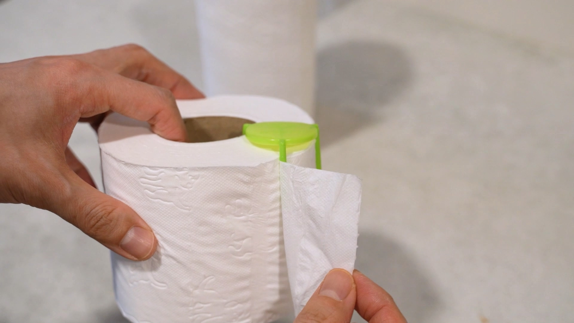 키친타월이나 두루마리 휴지에 피자세이버 하나를 꽂아 사용해 보세요. 보통 이렇게 생긴 두루마리 휴지를 사용하면 항상 나풀거려 불편할 때가 많이 있는데요.