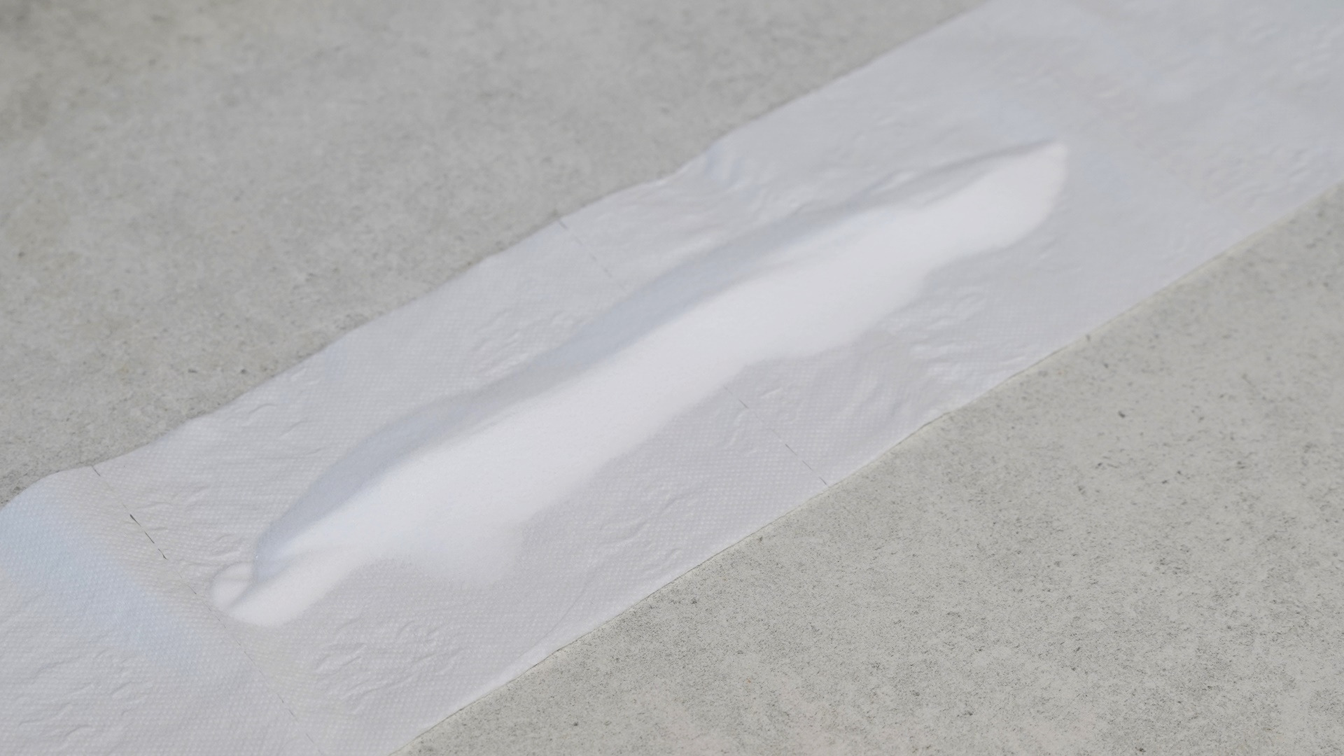 이제 베이킹소다를 흘리지 않도록 휴지를 잘 접어 주세요. 양쪽 한 칸씩을 가운데로 옮겨 주세요.
